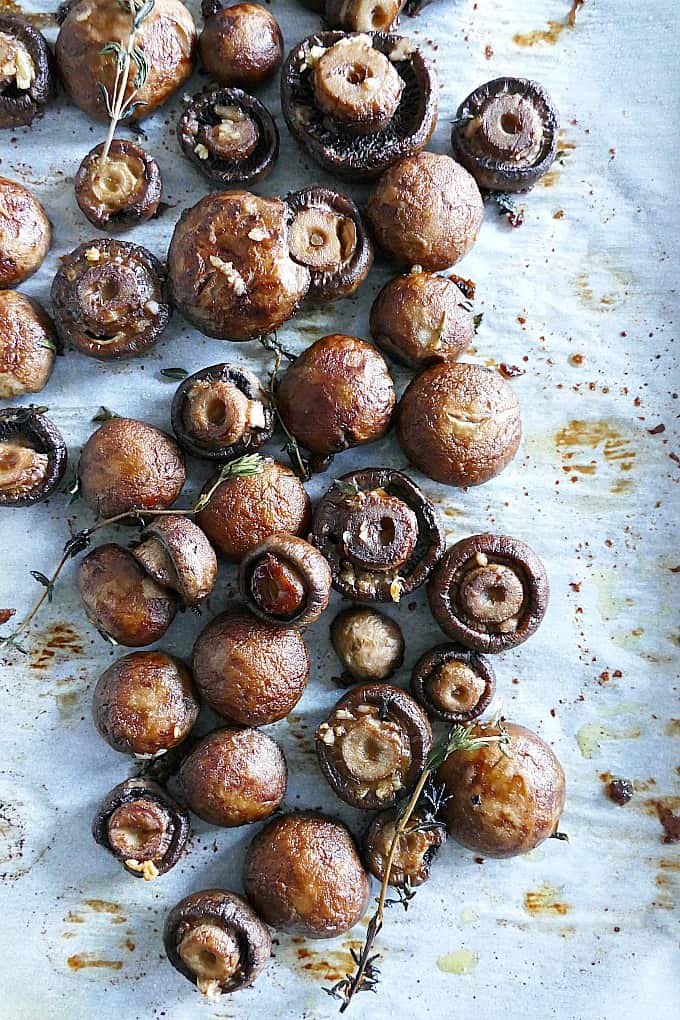 These Garlic Roasted Mushrooms with Thyme are an excellent side dish for a quick weeknight dinner. And heck, they’re so good that they would even taste great as part of a dinner party menu (post-pandemic of course)! Or for a holiday spread.